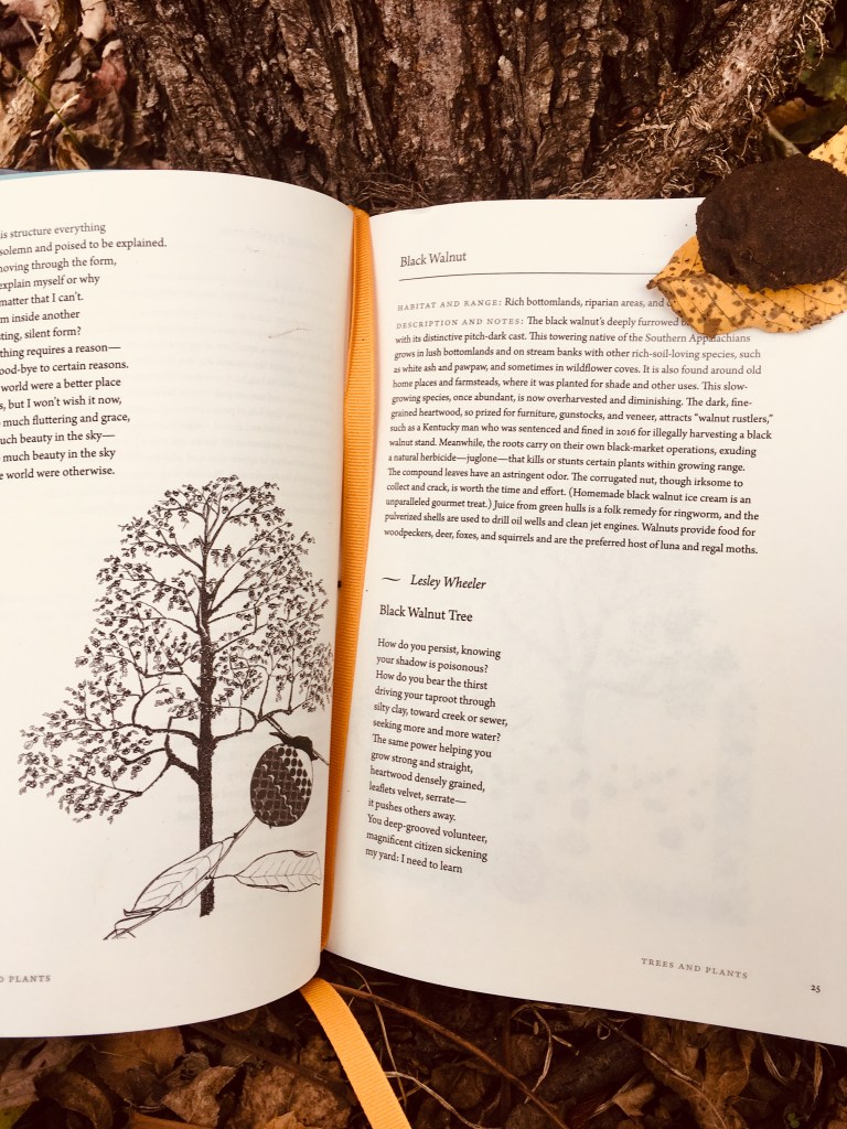 Today’s treat was reading a splendid new anthology I am lucky enough to have a poem in: the brand-new Literary Field Guide to Southern Appalachia, edited by Rose McLarney and Laura-Gray Street. They commissioned pieces on various plants and creatures from poets with connections to the region, and so many of the poems are gorgeous and moving. Each species, too, is described by naturalist L.L. Gaddy and illustrated in black-and-white by seven Southern Appalachian artists. The resulting book is both local and diverse, and truly a stunner.