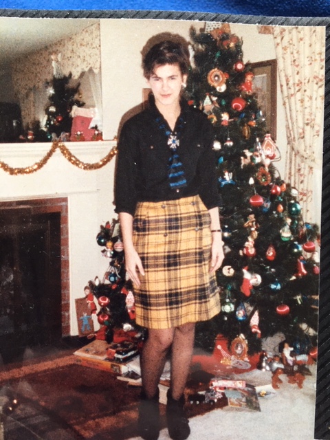 Dessert for closure: I was just reading/ viewing/ listening to a presentation on punk by my amazing Poetry and Music students, and I went looking for pictures of myself in my commodified punkish teenage outfits. I didn’t find any of the pre-ripped sweatshirts with weird zippers and safety pins, nor the tiny leather miniskirts, but here’s me at 16 or 17 in fishnet stockings bought at Paramus Park Mall, by a Christmas tree no less. I’m pretty sure I was using Dippity Do to mimic David Bowie’s wet look on the cover of Changes Two. You’re welcome.