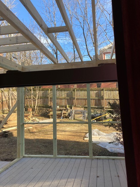 Please enjoy the photos below of progress toward our future screened-in porch, to replace a rotted deck that was older than our children. It’s slow work, especially with all the snow we’ve been getting, but I like to imagine sitting back there reading, come spring. Not a metaphor at all…
