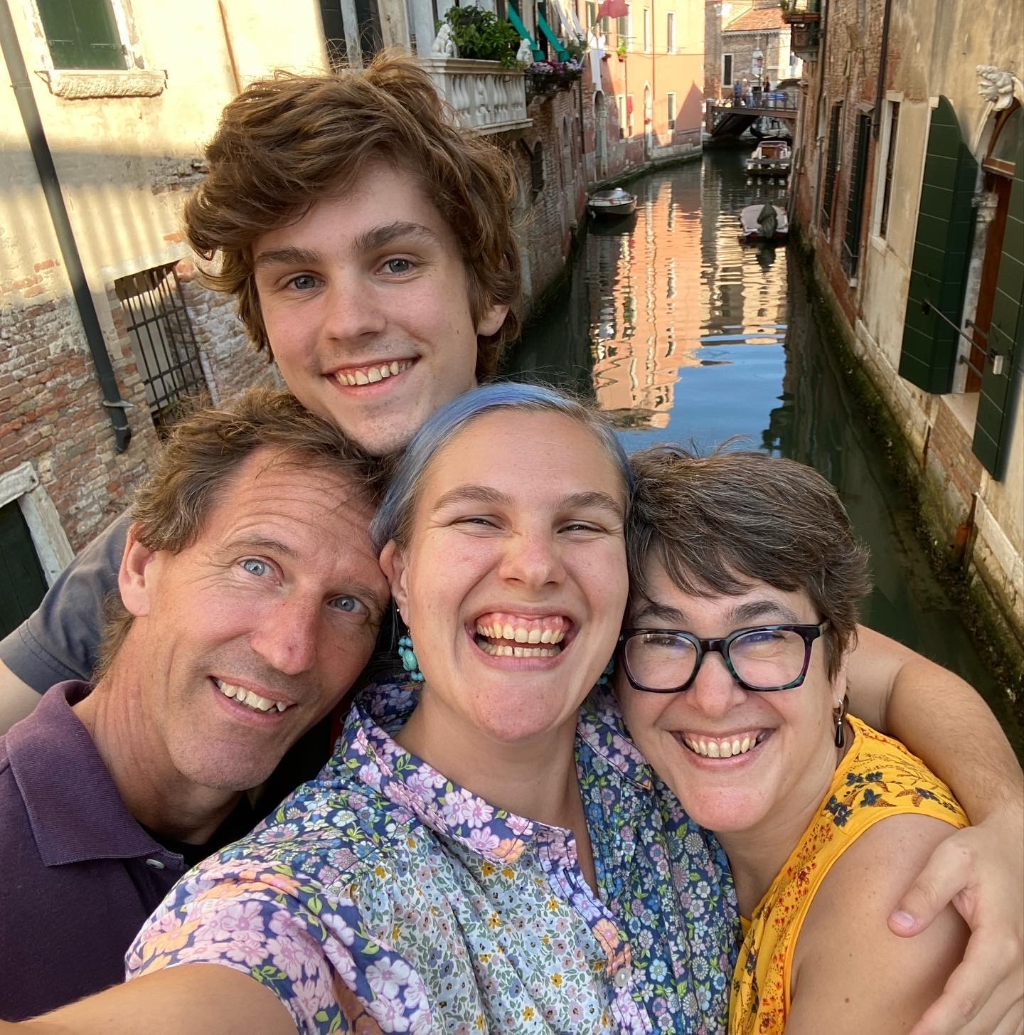 The 3 1/2 novels I read purely for pleasure during the journey were powerful, including deeply moving literary sf by Jason Mott (Hell of a Book) and Emily St. John Mandel (Sea of Tranquility). Museums always nourish me, and I was particularly jazzed by the “Enchanted Modernity” exhibit at the Guggenheim in Venice (lots of poetry connections, plus tarot!). There were also little moments of humans being kindly present to each other: the two women at the airport who reticketed us after a massive Expedia mistake (I yelled, uncharacteristically, “You are angels!”). The proprietor of a Budapest hot chocolate shop interviewing each of us at length about what our perfect cups would be (and then delivering them–they were amazing). People being considerate on public transportation, imagine that. And, of course, having my family of four together after my son’s four-month study abroad.