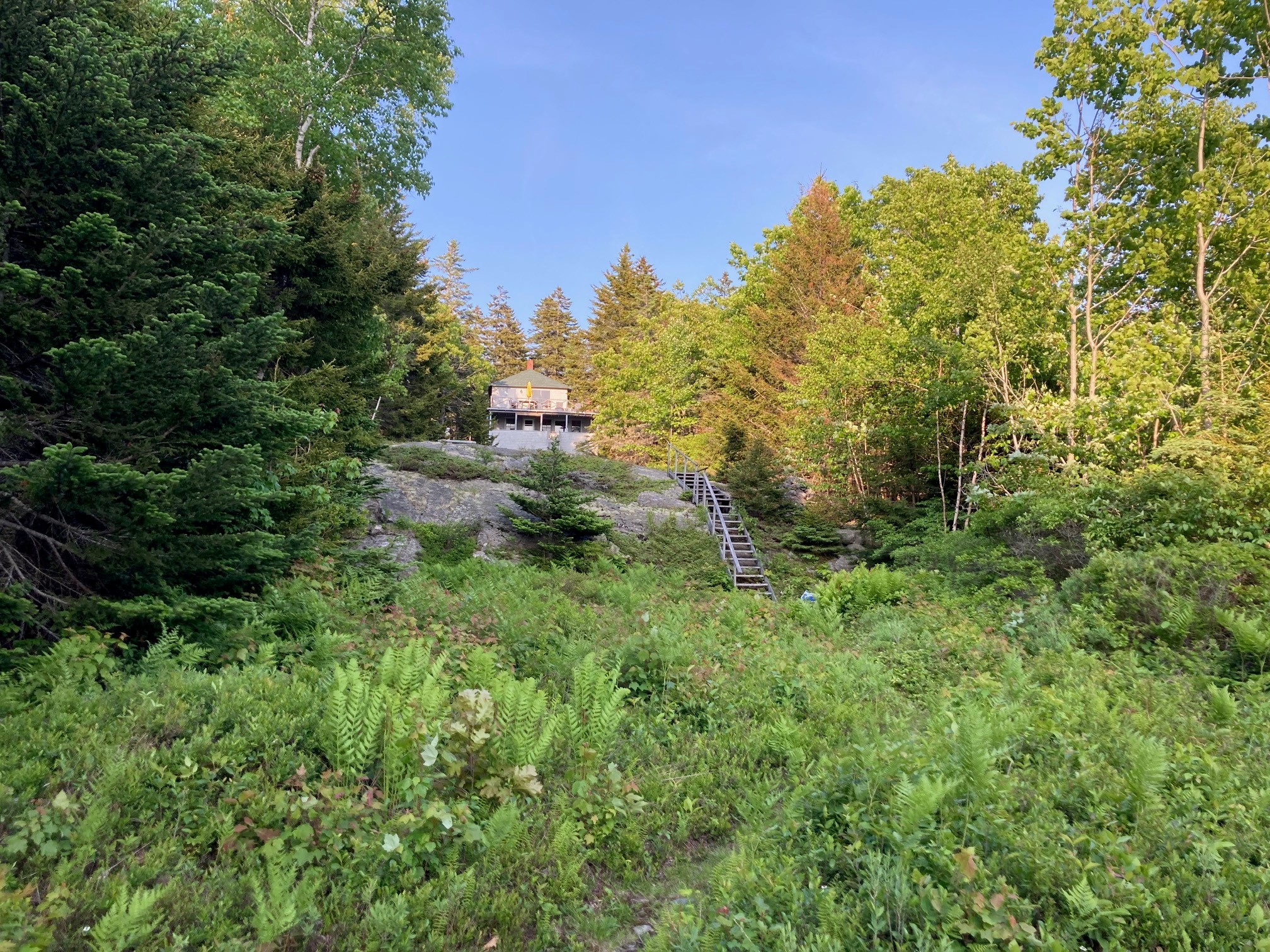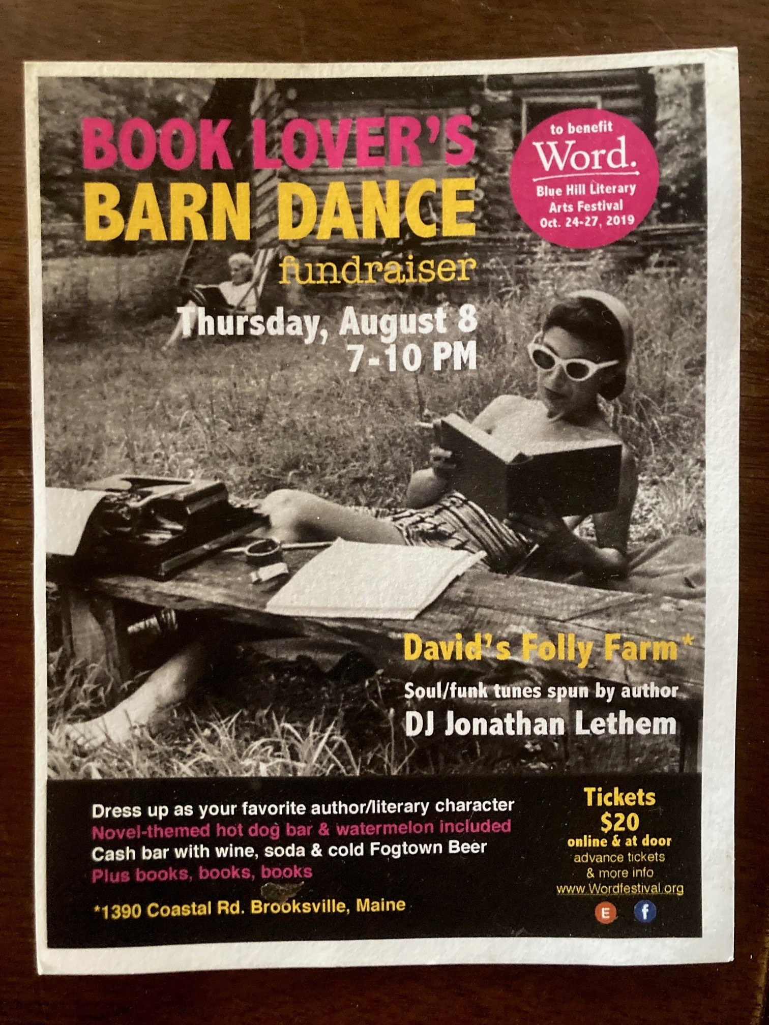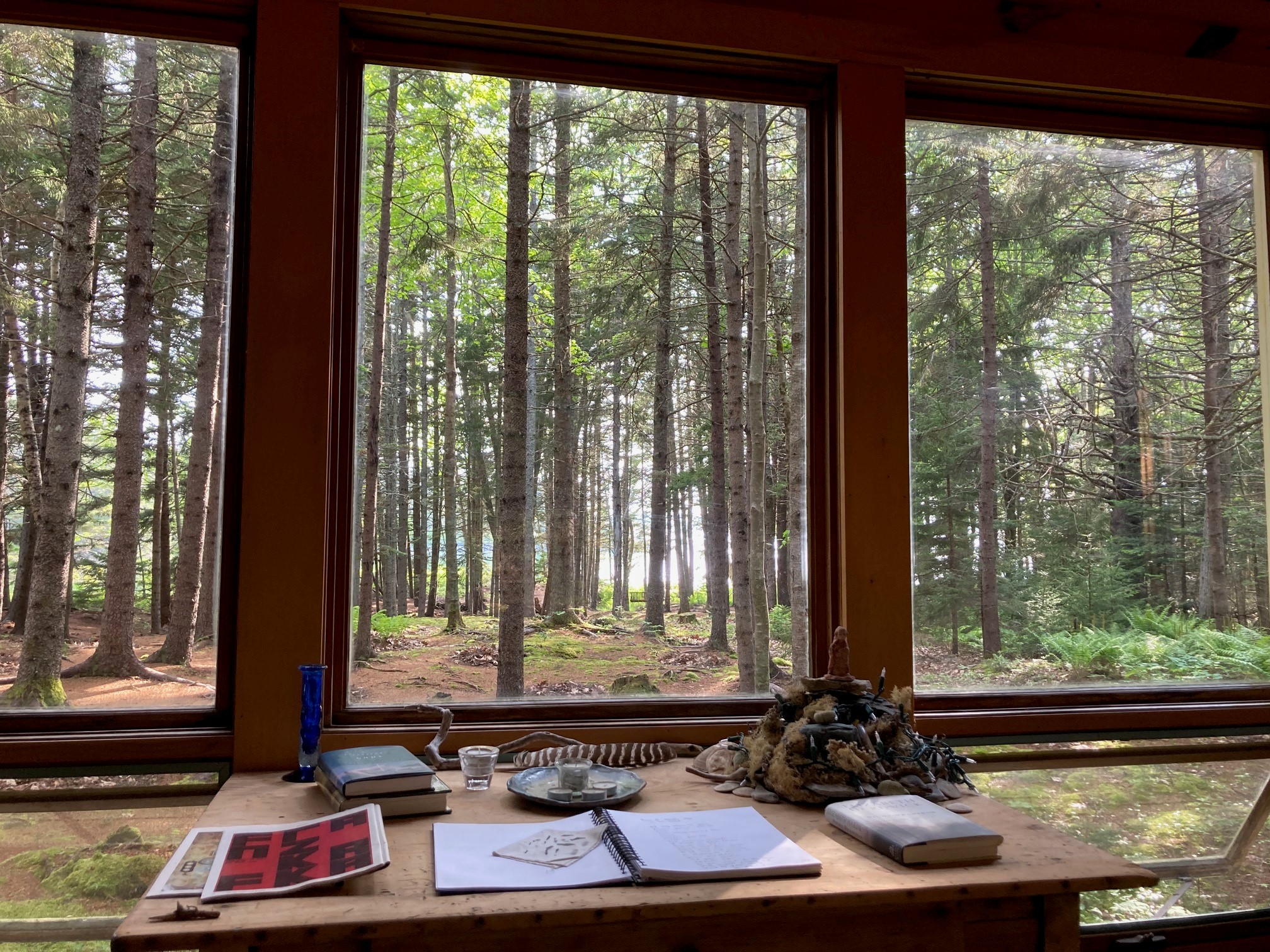 The most poetic aspect of this trip was the grandeur of Maine’s landscape, particularly in astonishing Acadia National Park–cliffs of pink granite above blue seas!–but also on the smaller local hikes we did around our rented house in Brooklin, on the Blue Hill peninsula. Even our lodgings had a literary vibe. We got really lucky in this rental, which I chose from among Airbnb and VRBO listings with some trepidation, because it was a new offering with no previous reviews. The little house sat on a hunk of granite overlooking Wells Cove and beyond that, Eggemoggin Reach. It had an old-fashioned kitchen, nothing beyond wood planks to separate and therefore soundproof the bedrooms, plus rickety steps wherever you looked, so it wouldn’t work for everyone, but man, that view. It also had walls and walls of GOOD books; multiple desks and well-situated reading chairs; quirky art on the walls; a kiln; and a small separate cabin with no running water that was clearly used by a writer. I have no idea who the resident artists are or were–I can easily imagine people making a life on this property until the accessibility challenges became too much–but I can tell you they read history, lots of novels, and an experimental-intellectual strain of poetry, from the modernists through Mei-mei Berssenbrugge. Alas, none of Millay’s “myriad magics” stood on the shelves. Sick’ning! Nay! I know not how such things can be!