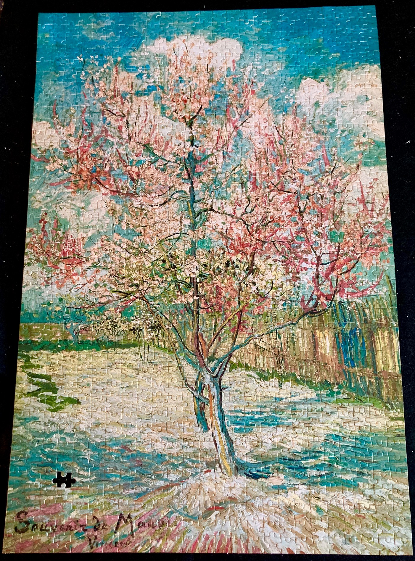 I finished this 1000-piece jigsaw puzzle of a Van Gogh painting, and it only took 2 1/2 years! Seriously, my family started it on Thanksgiving 2020, stalled out, rolled it up on one of those felt contraptions, bagged it, and threw it in a corner of the living room. This week was quiet with Chris away, so on a whim I pulled it out. I quickly became obsessed, for reasons I didn’t understand. I don’t want to tell you how many hours I spent sorting and fitting the little streaky pastel pieces. (P.S.: I eventually found the final missing shape, after I broke the puzzle up and reboxed it, of course.)
