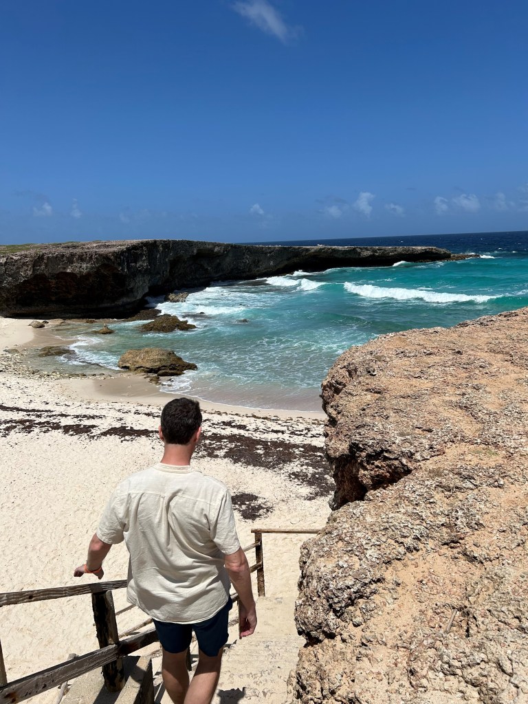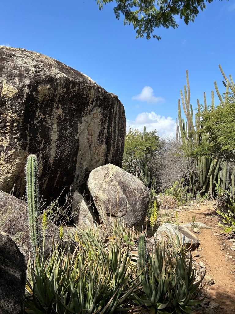 This video is of a random person we watched on a quiet beach on our four-night trip to Aruba: a parasailer gliding back and forth for an hour, occasionally leaping or dipping into the Caribbean but mostly just writing his verse across the horizon, left to right and calmly back again as the sun set behind him. There was a casino-high-rise section in Aruba that we visited and got the hell out of fast; we stayed elsewhere, in a family-owned hotel that hadn’t been “updated,” and were glad. Highlights: a national park with caves and Arawak petroglyphs; good restaurants in Oraanjestad; and simply reading on the beach. Those heart palpitations I wrote about last time, occurring multiple times a day for long stretches? Mostly gone now. Sunshine, a radical change of scene, and, not incidentally, five days not doing any schoolwork–just what the doctor ordered.