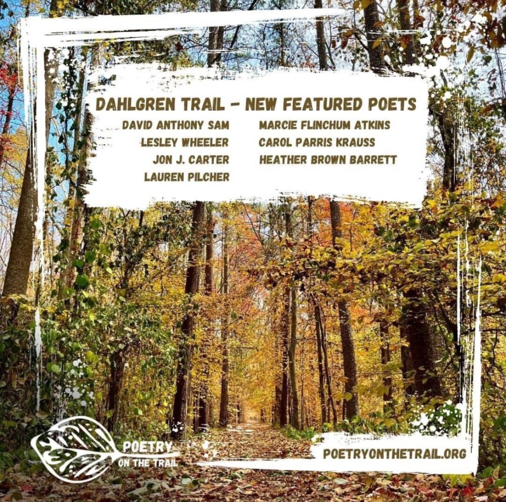 *On the subject of walking: my poem “Tone Problem” is going to be part of a Poetry on the Trail project! Thanks to Jenna Veazey for her hard work and vision. This will be on the Dahlgren Railroad Heritage Trail in Fredericksburg, Virginia, a road trip for me, but I’m looking forward to it. Walking is another move that cures what ails me.