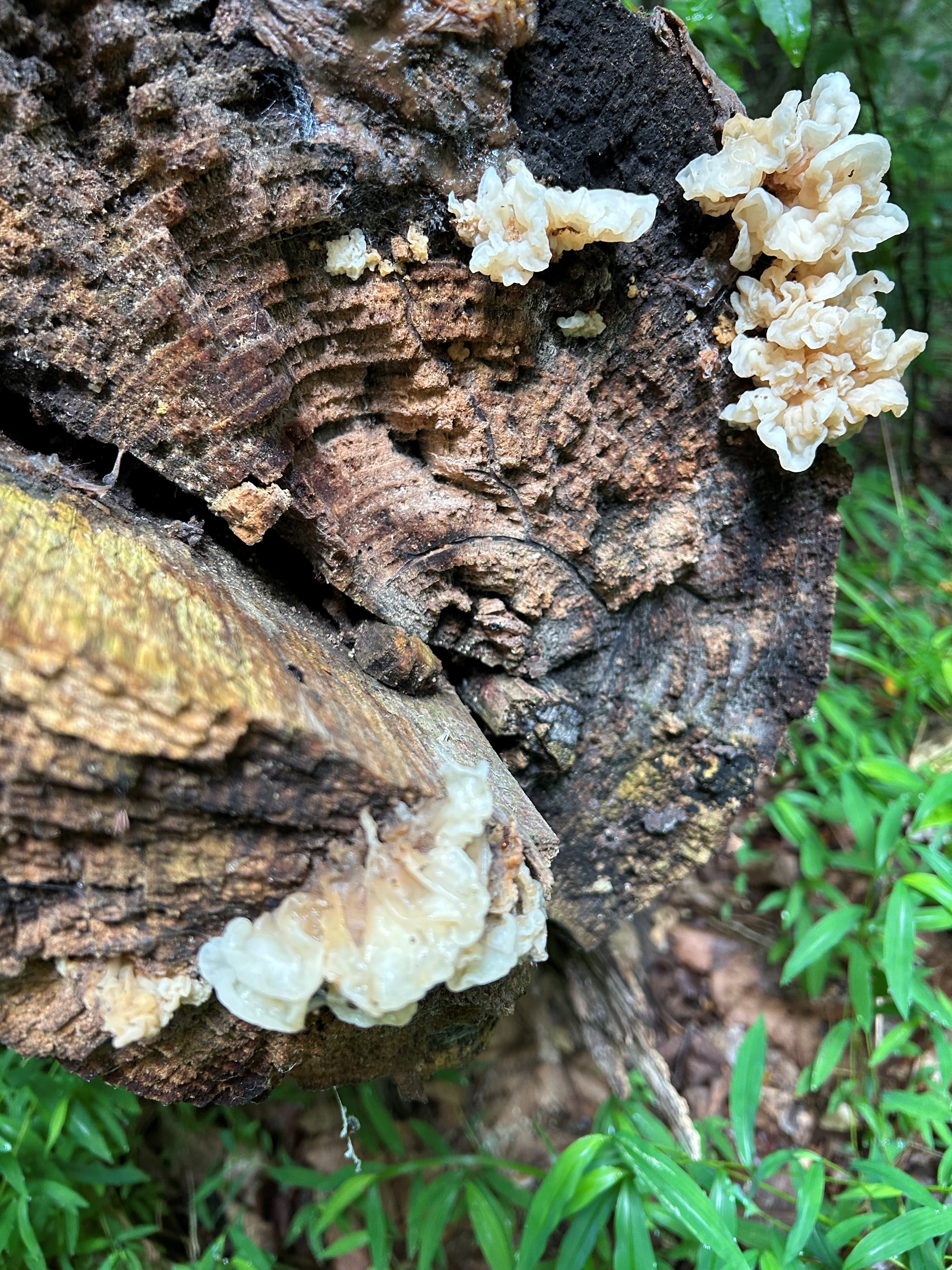 Next weekend I’ll be taking a brief break to loll on a New Jersey beach. I’ll leave you with another Mycocosmic outtake, a poem published in Interim but eventually cut from the ms. I wrote it in spring 2020 while teaching Dickinson via Zoom on a laptop propped up by Johnson’s three-volume variorum edition. It refers–too cryptically, I think–to the Dickinson poem beginning “Alone and in a Circumstance,” which seemed to speak to me about my pandemic existence intimately, though from worlds away. After the poem are a few snaps of the fungal life teeming in the soggy Virginia woods these days. I also saw my first ghost pipes! (Dickinson wrote about “Indian pipes”a plant she admired that can’t photosynthesize so lives symbiotically, with fungal assistance. Don’t we all.)