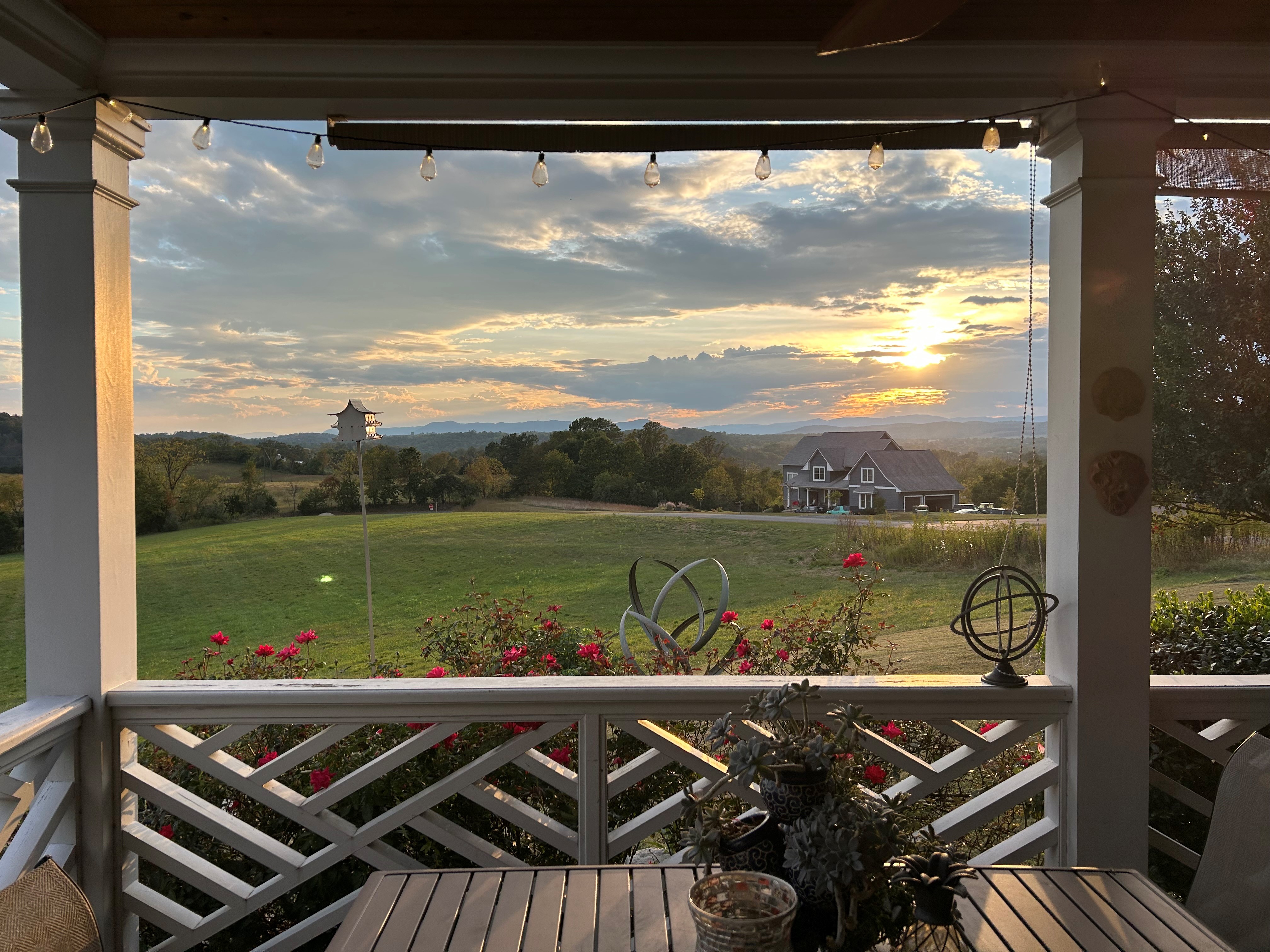 - Pre-birthday dinner on a friend’s back porch, watching the sun set over the mountains. Another kind of luck.