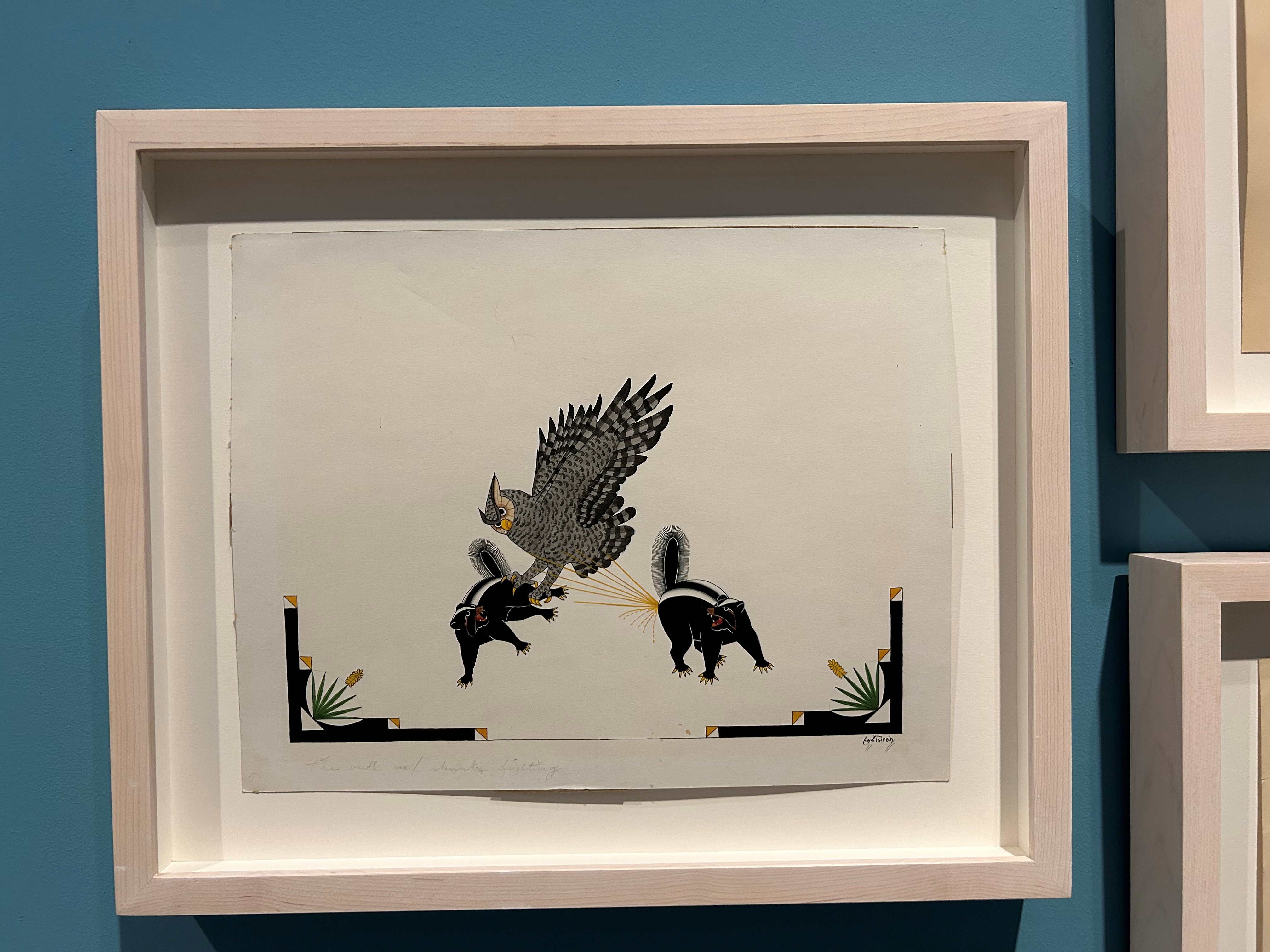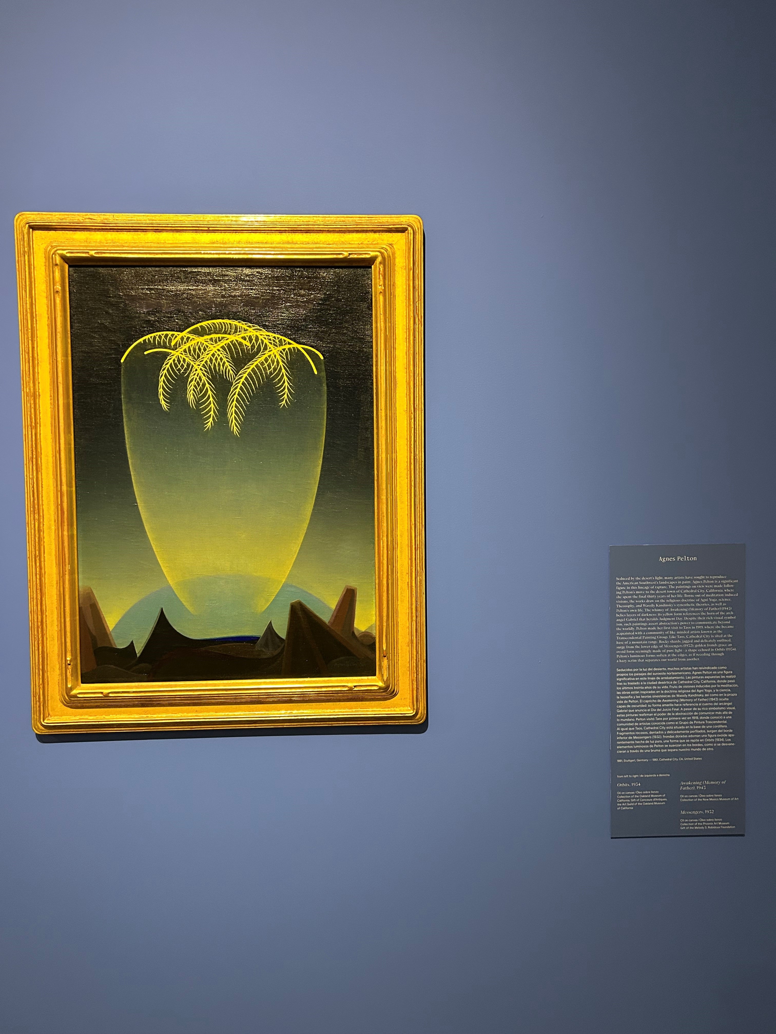 My otherwise beautiful and stimulating trip to New Mexico last weekend ended in a 50+ hour sojourn home with many boring, stressful delays and zigzags you don’t want to hear about–although may curses rain down upon this vengeful, tyrannical president and his transportation secretary forevermore for making travel harder than it was already (among much worse crimes). I hereby wash away the aftertaste with some snaps from exhibitions in Santa Fe, a city famous for art galleries. Most are from Site Santa Fe: first a row of art by writers who have some Santa Fe connection, then a few pieces I found memorable. I’d never heard of Agnes Pelton, whose surreal images were influenced by Theosophy–wouldn’t that make a stunning poetry book cover? There was a whole room in the O’Keeffe museum devoted to spirals, a figure I’ve been contemplating in poems for more than a year now. And the skunks by Awa Tsireh–I just love them. (The featured image of Mycocosmic among the shrooms, by the way, is thanks to Jeannine Hall Gailey.)